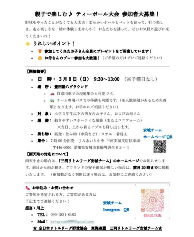 財団法人 全日本リトル野球協会 東海連盟‗三河リトルリーグに所属しております。