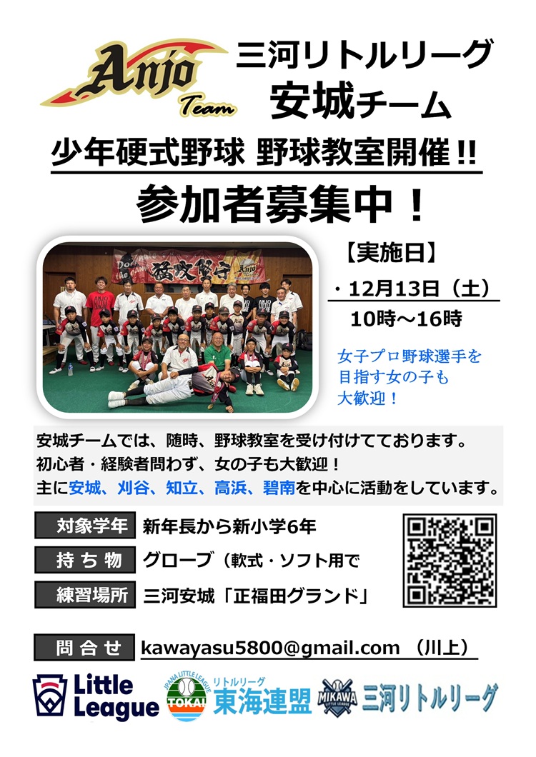 財団法人 全日本リトル野球協会 東海連盟‗三河リトルリーグに所属しております。